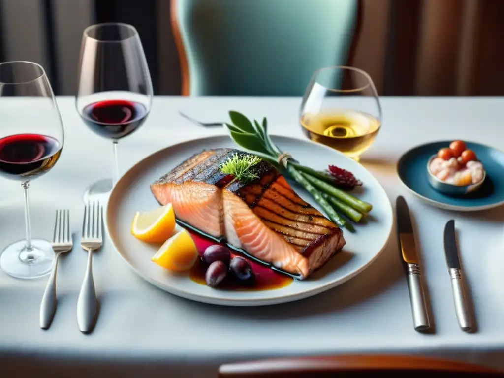 Por otro lado, si estás preparando un salmón a la salsa de eneldo, un vino blanco seco y mineral como un Chablis o un Muscadet complementará la frescura del pescado y la intensidad de la hierba aromática, creando una armonía en el paladar.