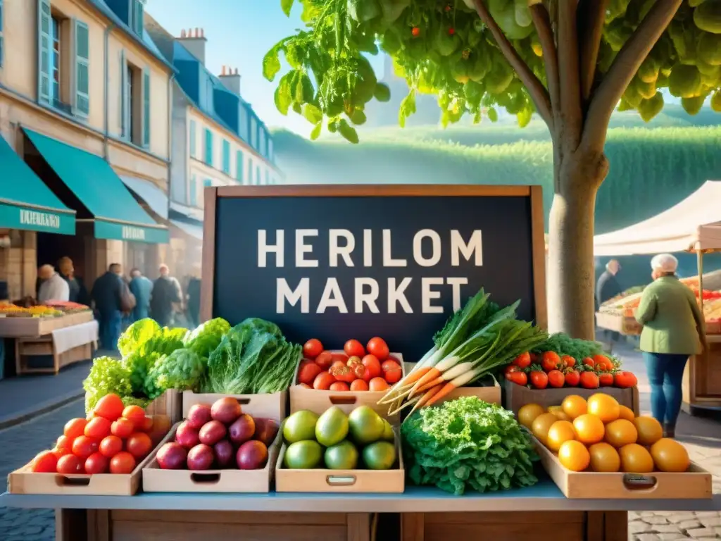 Mercado vibrante en Normandía con verduras frescas, tesoro culinario